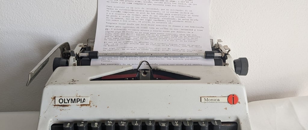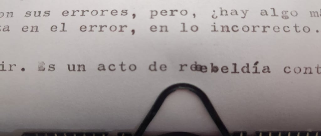 Había algo mágico en aquel proceso, en la máquina en sí misma, algo que la ataba y a la vez le calentaba el alma. Quizás le daba voz a su propia alma. Quizás, estaba entre las teclas, entre el ruido y esa campanita que resonaba casi con felicidad.